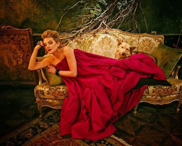 Рената Литвинова опубликовала в своем микроблоге новое фото. На снимке актриса лежит на кушетке в эффектном платье алого цвета.