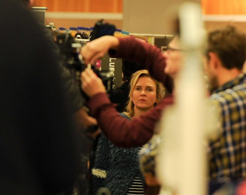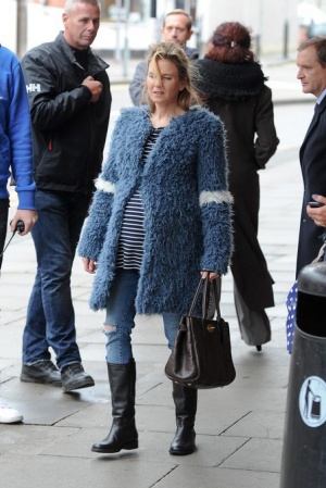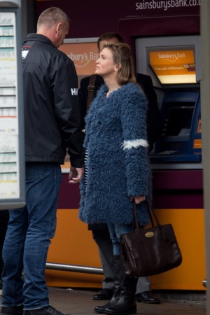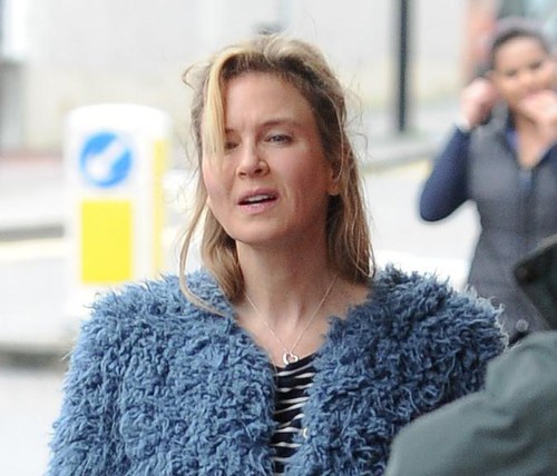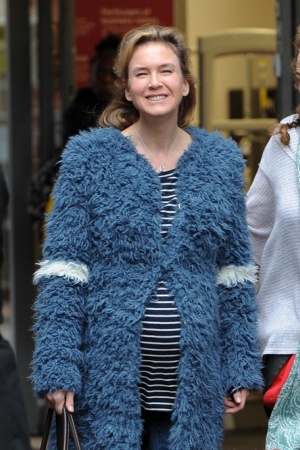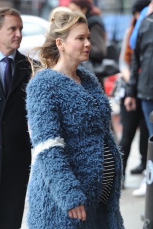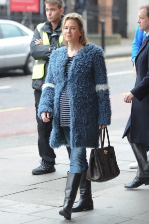 Рене перевоплотилась в образ не просто Бриджит, а беременной Бриджит. Странное пальто из синего искусственного меха, как всегда растрепанные волосы и... заметный животик — такой будет любимая многими героиня в новой части истории.