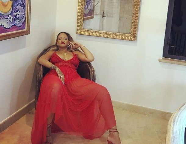 На странице в Instagram певица похвасталась модной обновкой. Рианна примерила полупрозрачное алое платье от Christopher Kane.