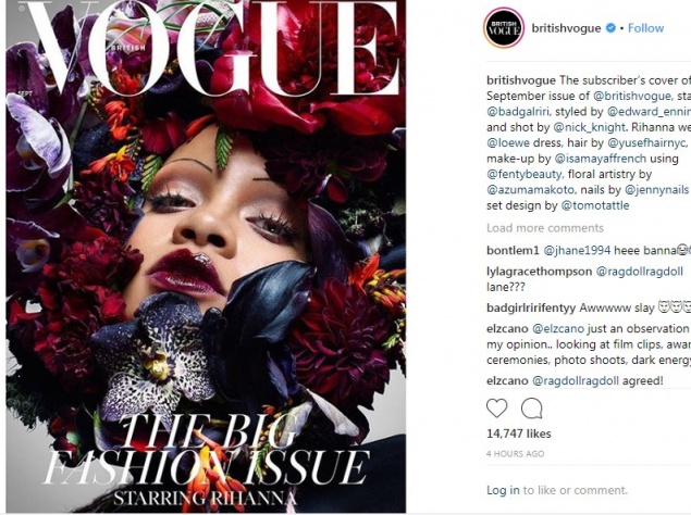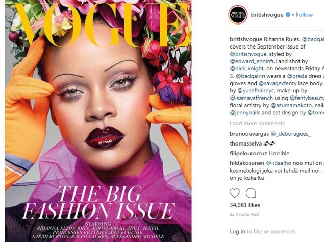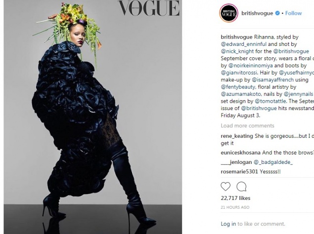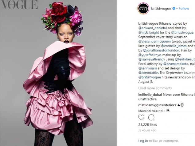 Отмечается, что Рианна стала первой темнокожей женщиной в истории осеннего выпуска Vogue