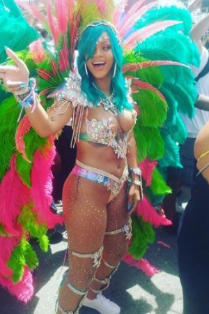 Рианна явно довольна своим внешним видом – на днях 29-летняя певица повеселилась вместе с соотечественниками на традиционном празднике-карнавале Crop Over, посвященном сбору урожая. Снимками она поделилась в своем Instagram.