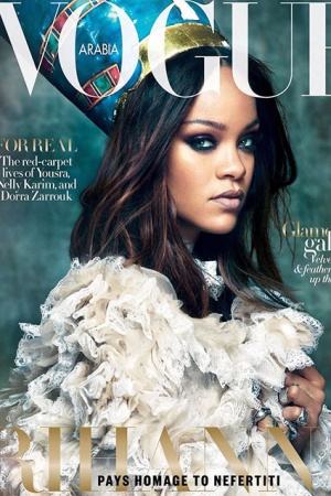 Vogue Arabia представил в сети обложку своего ноябрьского номера, а точнее – две обложки. Лицом обеих стала 29-летняя Рианна, создавшая вместе со стилистами издания образ древнеегипетской царицы Нефертити. Певица позировала в одежде Gucci фотографу Грегу Кейделу.