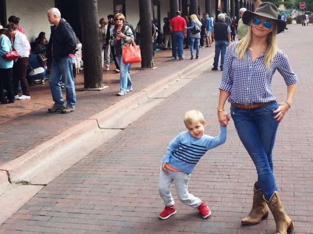 На фотографии 39-летняя Риз Уизерспун запечатлена вместе с маленьким Теннесси во время прогулки по Мехико. Риз похвасталась необычным образом в ковбойских сапогах, шляпе и рубашке, заправленной в джинсы. Непоседливый сын актрисы во время прогулки корчил забавные гримасы и мило улыбался.
