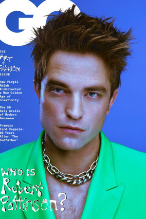 На первой обложке Паттинсон изображен в зеленом пиджаке на голое тело с массивной цепью на шее.