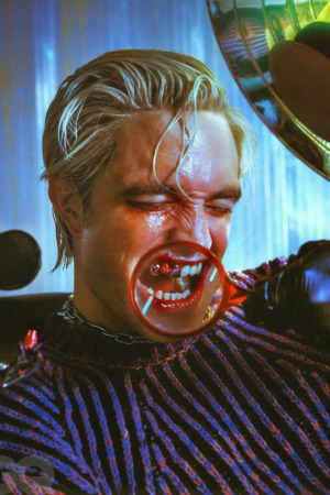 Другая обложка показывает, что мужчина может вполне естественно выглядеть в образе панка с татуировками и торчащими в разные стороны белыми волосами.