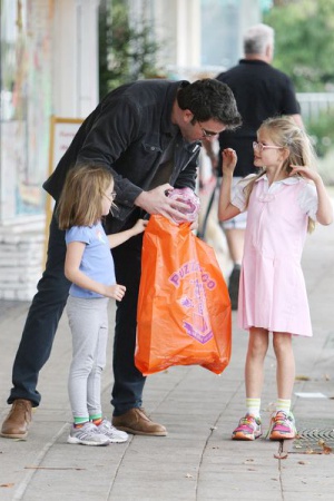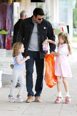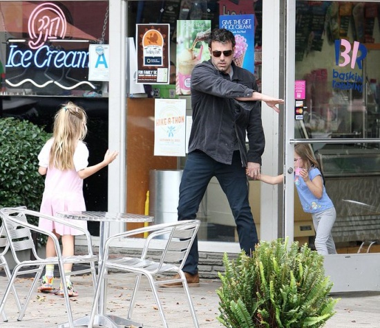 Будущий Бэтмен – Бен Аффлек – забыл на некоторое время о кино и поработал папой. Актер забрал дочь Вайолет из школы и отправился с ней и еще одной дочкой Серафиной за мороженым и за игрушками. Девчонки, видимо, были счастливы.