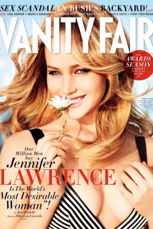 Девушка предстала на страницах журнала в образе роковой красотки – за сессию отвечала известный фотограф Эллен фон Анверт. Понятно, что все это приурочено не к выходу новых "Голодных игр" в ноябре 2013 года – а к "оскаровской" гонке.