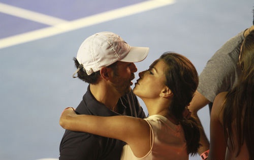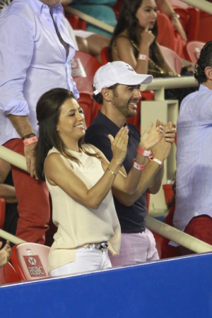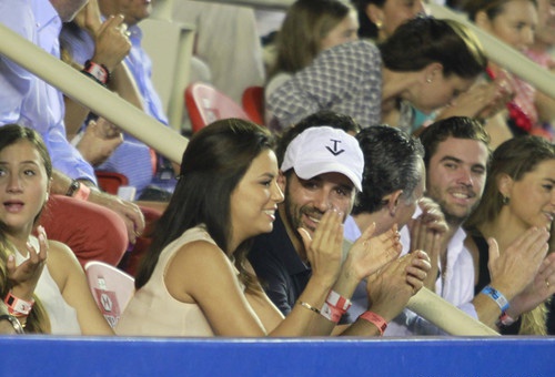 39-летняя Ева и 46-летний Хосе встречаются уже больше года. Их роман начался осенью 2013 и, похоже, развивается весьма активно. Во время игры влюбленные постоянно обнимались и не упускали случая для очередного поцелуя.