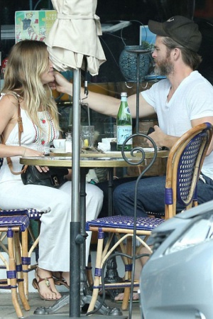 Так как пара обедала снаружи, было заметно как Крис нежно прикасается к лицу спутницы.
