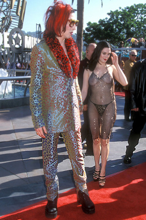 Роуз Макгоун в недавней беседе с Yahoo Entertainment вспомнила о своем скандальном выходе на красную дорожку церемонии MTV Video Music Awards в 1998 году. Тогда актриса появилась на мероприятии в прозрачном платье без белья под руку со своим бойфрендом Мэрилином Мэнсоном.