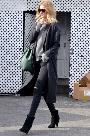 На днях, в сети появились снимки Роузи во время прогулки по Лос-Анджелесу. Для выхода в свет Хантингтон-Уайтли выбрала черные джинсы, серый кардиган и пальто темно-серого оттенка. Что сказать, даже в таком, казалось бы, просто наряде возлюбленная Джейсона Стэтхэма выглядит великолепно!