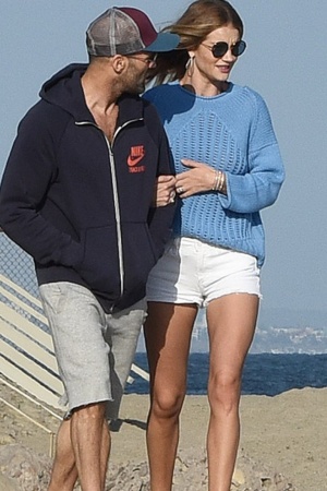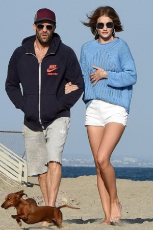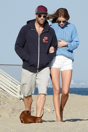 Джейсон Стэтхэм со своей невестой Роузи Хантингтон-Уайтли вышли на прогулку по пляжу в Малибу в ветреную погоду. 48-летний актер надел толстовку, а модель была в теплом голубом свитере, хотя и показала стройные ноги в коротких белых шортах.