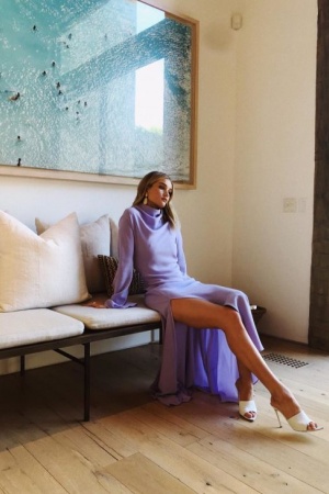 31-летняя британская модель продемонстрировала свою прекрасную форму в лавандовом платье.