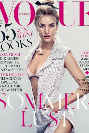 Известная модель, одна из ангелов Victoria's Secret, Роузи Хантингтон-Уайтли, появилась в новой фотосессии для немецкого издания Vogue. Фотосет получился очень нежным и трогательным. Пастельные тона хорошо передали атмосферу знойного лета.