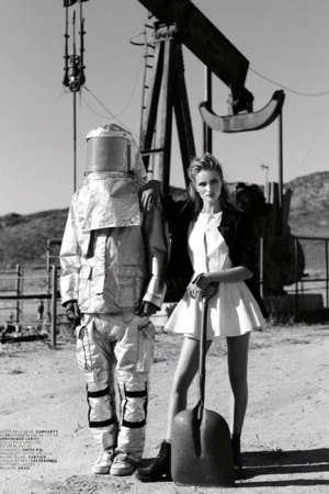 Британская модель Роузи Хантингтон-Уайтли снялась в фотосессии для журнала Jalouse Magazine. Фотосет сделали в стиле рабочих, которые добывают нефть.