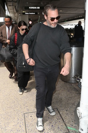 Желая остаться неузнанными и дабы не привлекать к себе внимания, Феникс и Мара не только оделись во все черное (лишь большой красный рюкзак на плечах актрисы стал ярким пятном в образах их обоих), но даже не снимали солнечные очки в здании аэропорта. Узнать голливудских звезд в этой паре было действительно не так легко — выглядели Хоакин и Руни как простые обыватели. Впрочем, Феникса выдала его обувь — излюбленные черно-белые кеды, в которых он регулярно выходит в свет. Их удобство оценила и актриса, которая тоже сделала выбор в их пользу.
