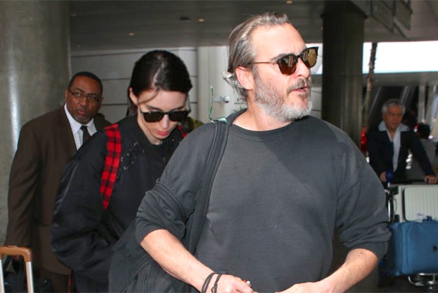 С момента начала отношений 43-летнего Хоакина Феникса и 33-летней Руни Мары прошел уже почти год, а пара за это время успела засветиться вместе всего лишь несколько раз — влюбленные свою личную жизнь от посторонних глаз предпочитают скрывать, да и быть в центре внимания им, кажется, не очень-то нравится. Тем не менее спрятаться от папарацци не удавалось еще ни одной звезде. Вчера пару засняли в аэропорту Лос-Анджелеса, куда Хоакин и Руни прилетели из Рима.