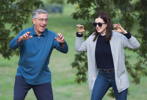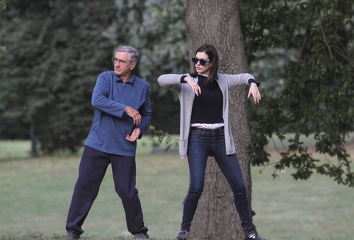 Роберт Де Ниро и Энн Хэтэуэй упражняются в тай-чи на съемках нового фильма "Интерн".