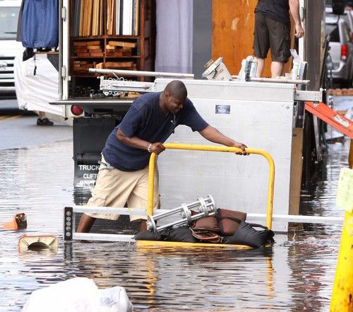 Съемки фильма проходят в Нью-Йорке. На днях работникам площадки пришлось потрудиться, чтобы устранить последствия внезапного ливня, обрушившегося на Бруклин и затопившего часть декораций.
