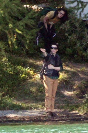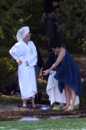 Съемки переместились на живописные ландшафты Швейцарии. Жюльет без лишнего стеснения искупалась в озере обнаженной, а вот Кристен раздеваться полностью не пришлось.