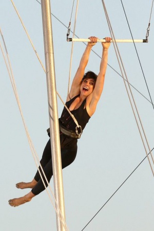 На съемках нового сезона сериала "Беверли-Хиллз 90210: Новое поколение" АннаЛинн МакКорд, Шеней Граймс, Тристан Уайлдс, Мэтт Лантер и Джессика Лаундес веселятся на пляже. А Джессике Строуп пришлось испытать себя в таком непрстом деле как полеты на трапеции.