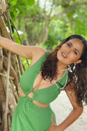 Сальма Хайек опубликовала новые кадры, на которых запечатлена в зеленом сарафане, и поблагодарила своих поклонников за то, что подписываются на ее страницу в Instagram.