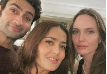Сальма поделилась фотографией в своем Instagram. На ней можно увидеть звездное трио — Джоли, Хайек и Нанджиани.