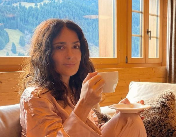 В Instagram артистка опубликовала снимок, где предстала без единой капли декоративной косметики и фотошопа. На снимке Сальма предстала в бежевой пижаме и со стаканом кофе.