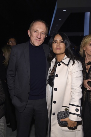 На модный показ знаменитая актриса Сальма Хайек пришла вместе со своим супругом Франсуа-Анри Пино.