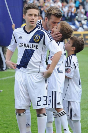 Дети Дэвида и Виктории Бекхем не стесняются демонстрировать привязанность к родителям. Судя по всему, в семействе Бекхемов царит мир и благодать. Родители не стесняются проявлять искренние чувства в отношении трех сыновей - Бруклина, Ромео и Круза, а также малышки Харпер. Нам же остается умиляться искреннему счастью одного из самых прочных звездных браков.