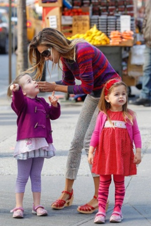 И как тут не улыбаться, когда звезду со всех сторон окружили ее маленькие и стильные доченьки!