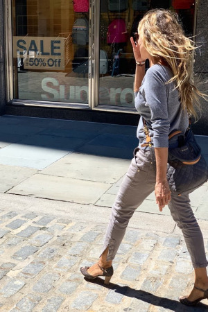 Так, на новых фото Сара прогуливается улицами города в серых джинсах и нежно-голубом пуловере. Casual-образ завершает довольно объемная сумка, надетая через плечо, и туфли на каблуке из новой коллекции бренда актрисы SJP Collection.