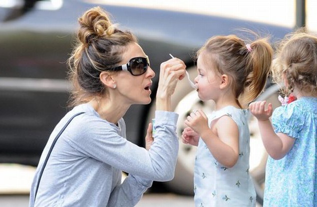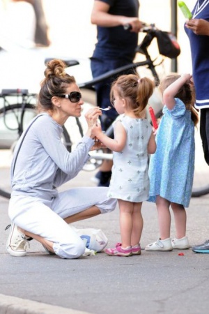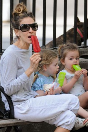 На днях Сара Джессика Паркер была замечена в Нью-Йоркском парке со своими дочерьми. Актриса прекрасно проводила время с малышками. Они играли и ели мороженое.