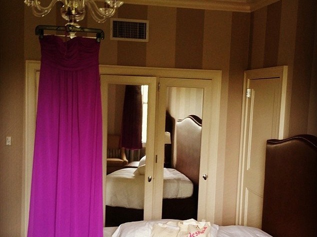Звезда "Секса в большом городе" примерла фиолетовое платье, которое выбрала для нее счастливая невеста.