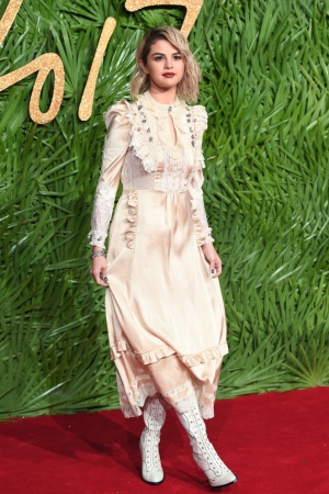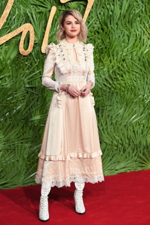 Одним из самых запоминающихся стало появление певицы Селены Гомес, имя которой в последнее время все чаще можно прочесть в заголовках мировых таблоидов. Для светского выхода знаменитость выбрала винтажное платье с рюшами и высокие белые сапоги на шнуровке.