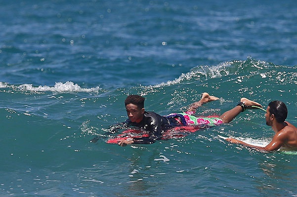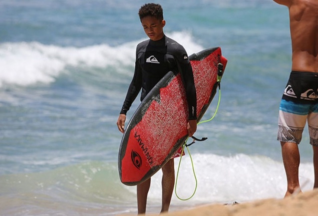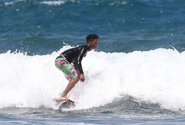 Как видно по фото, сын Уилла увлекается серфингом и уже отлично держится на волне.