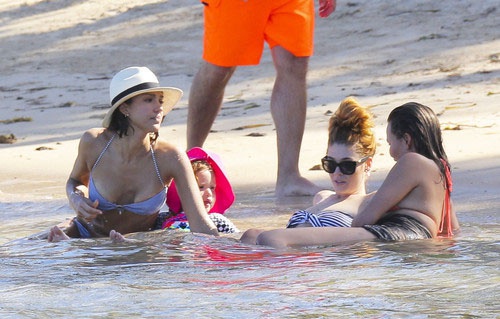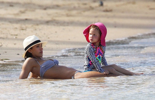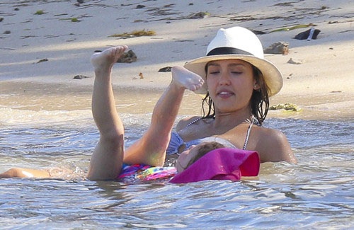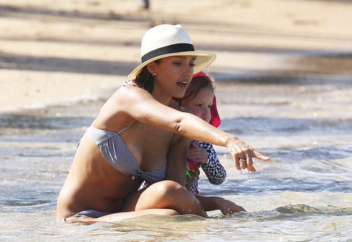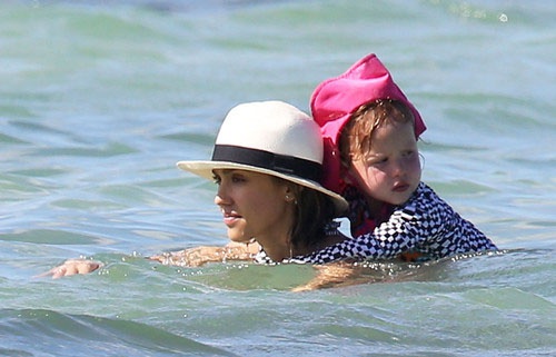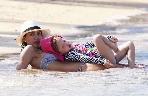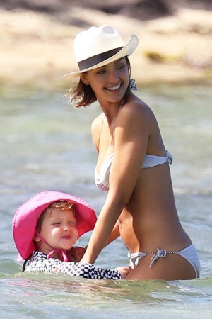 Компания очень весело проводила время на пляже. 33-летняя Джессика отлично выглядела в полосатом бикини и стильной белой шляпе. Актриса играла с дочерью и успевала пообщаться с друзьями.