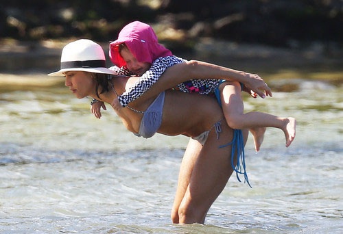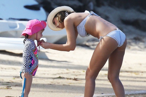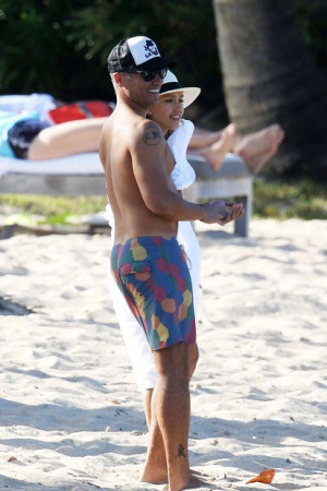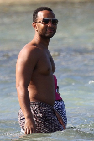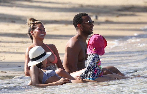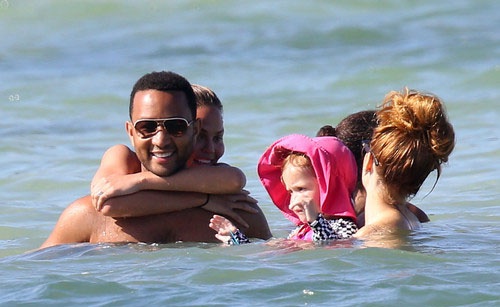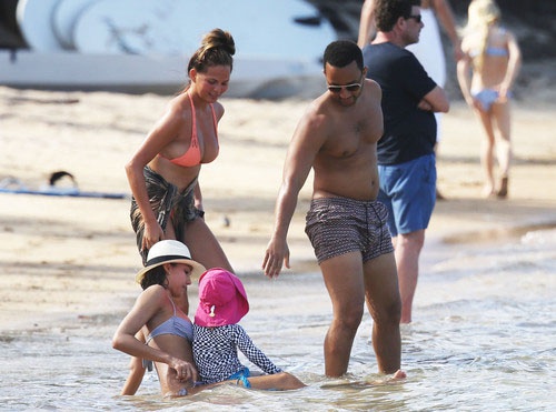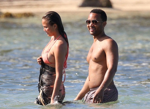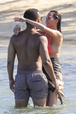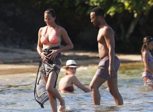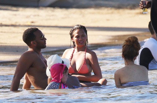 Модель Крисси Тейген, которая известна своей работой для журнала Sports Illustrated, предпочла скрывать свою фигуру от посторонних глаз. Она пакинула поверх оранжевого бикини скромное парео и внимательно следила, чтобы оно не сползло. Интеревно, все дело в природной скромности, или же Крисси пытается скрыть небольшой животик?