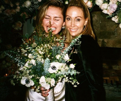 Майли: "Мама сказала мне, что этот букет я должна держать в руках ради традиции... не есть его... не курить... Я все равно это сделала. Извини, мама".