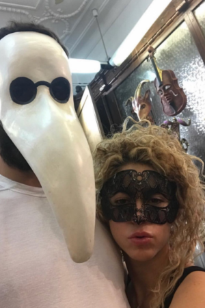 30-летний спортсмен и 40-летняя певица сделали снимок в оригинальных масках, также футболист написал под фото: "Покупка масок" и отметил Шакиру на фото.