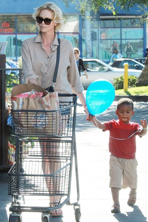 Шарлиз Терон отправилась на продуктовый шопинг вместе с двухлетним сыном Джексоном.