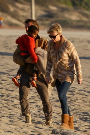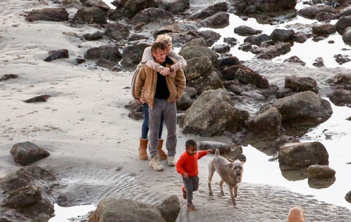 Шону удалось прекрасно поладить с приемным сыном Шарлиз. Малыш Джексон практически не отходил от актера во время прогулки по зимнему пляжу. Ну а Шарлиз не могла наглядеться на своего возлюбленного и то и дело осыпала его поцелуями.
