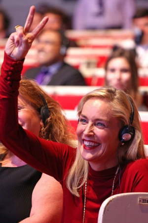 Шэрон Стоун приняла участие в церемонии открытия 13-го Всемирного саммита лауреатов Нобелевской премии, которая состоялась в Варшаве, Польша.