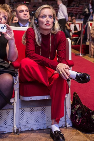 Действительно, звезда "Основного инстинкта" знает, как выделиться в толпе.