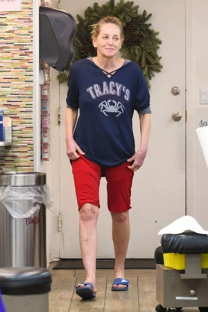 На снимках 61-летняя Стоун запечатлена в обычном салоне красоты. Для похода на косметические процедуры звезда выбрала обычные спортивные штаны и свободную синюю кофту.