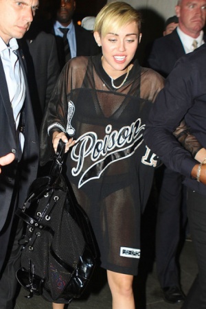 Майли Сайрус всегда славилась ярким стилем в одежде. Певица часто позволяет себе показать голое тело в очень странных нарядах. Почти каждый выход в свет малышки Майли заканчивается скандалом.