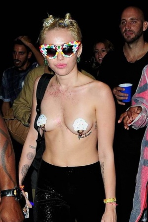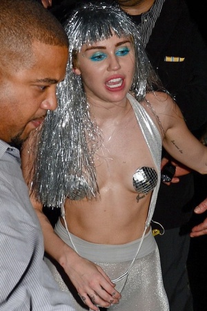 В последнее время, правда, она выглядела сносно, но, видимо, ее на время выпустили из дурки, что позволило Майли "оторваться по полной".