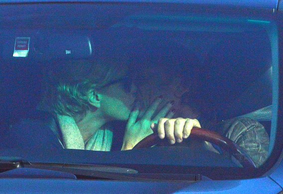 Парочка не упустила возможности поцеловаться, когда им пришлось остановиться на красный свет.