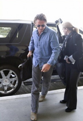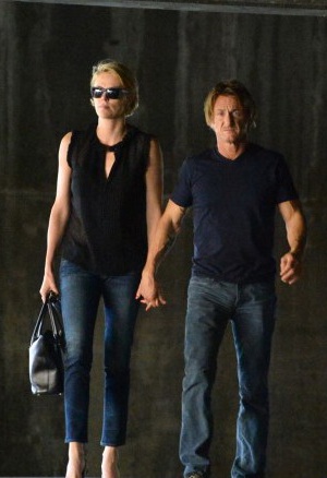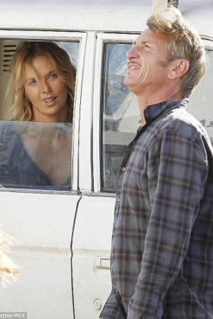 На заднем плане, в машине, папарацци подловили возлюбленную Шона актрису Шарлиз Терон.