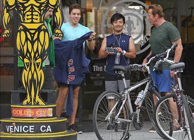 Арнольд Шварценеггер был замечен со своим внебрачным сыном, восемнадцатилетним Джозефом Баена. Именно из-за романа с его матерью, которая работала горничной, распался брак актера.